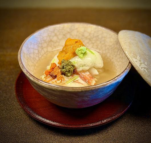 最後に生雲丹と山葵をそえて出来上がりです。