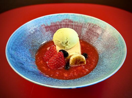 ミルキーババロアとバジルのアイス 苺スープ仕立て ~ 2月のデザート ~