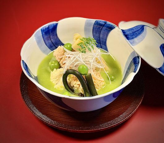 優しいうすい豆の風味を活かした うすい豆とろみ に浮かべたら